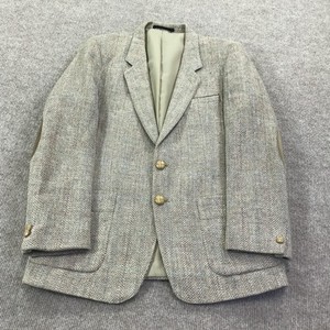 Harris Tweed Sport Mantel Herren klein grau Fischgrät Wildleder Ellenbogen Patches England