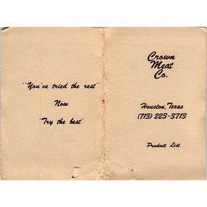 Crown Meat Co Houston TX Vintage Visitenkarte TH2-B2