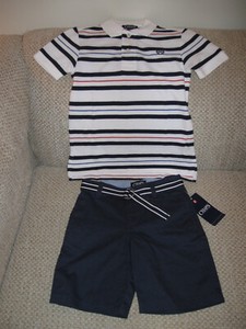 Chaps Jungen Polo/Kurz Set Größe 5 (rot, weiß, blau)
