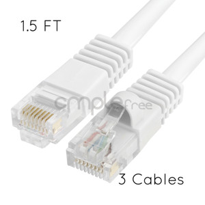 3x 1,5 Fuß CAT5e Kabel Ethernet Lan Netzwerk CAT5 RJ45 Patchkabel Weiß NEU