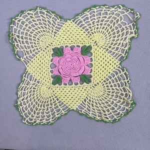 Häkeldeckchen Blume Herzstück Akzent Tischdeko Handarbeit Spitze rosa gelb