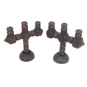 Primitiver geschnitzter Holz Kandelaber Goth Spanish Revival 2er Set
