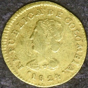 1824 - FM Kolumbien Gold 1 Escudo Popayan Münze - ✪COINGIANTS✪