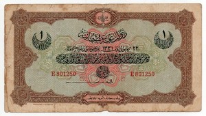 TÜRKEI OTTOMAN EMPIRE AH1332 (1916) - One 1 Livre - P# 99a - WMK : Gabelmuster CHF 15,9213 Gebote2T 10Std 57 Min