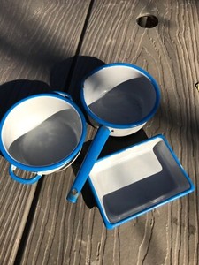 SELTENE KINDERGRÖSSE SCHÖNHEIT BLAU & GRAU PFANNE und TÖPFE Granitgeschirr Emaillegeschirr ANTIK CHF 78,79