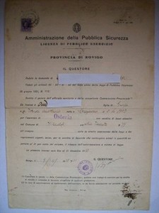 LICENZA DI PUBBLICO ESERCIZIO - OSTERIA ROVIGO 1938 (m26-1-41 )