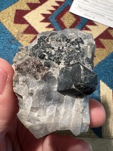 Exceptional unusual specimen. Seller always does a great job in packing and quick shipping. Used combined shipping to arrive at an outstanding value for two items. Did a little trimming of the soft granular cookite for display purposes. This is my third pink tourmaline specimen that is fluorescent purple in short wave. Very pleased with all of this seller's minerals that I have purchased.