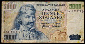 GRIECHENLAND, 1997, KOLOKOTRONIS, 5000 DRACHMEN (KLEINE ART) BANKNOTE. 16D CHF 1,070 Gebote5T 1Std 37 Min