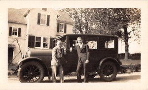 1930s Vintage Dodge Sedan Car with Two Men in Suits Black & White Photo