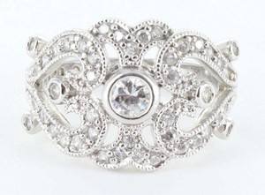 IMENA STERLINGSILBER 925 CZ DIAMONIQUE CLUSTER FILIGRAN STATEMENT RING, GRÖSSE 8