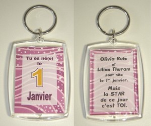 Porte clés ANNIVERSAIRE rose JOUR de ta NAISSANCE 1 janvier idée cadeau fille