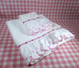 Süßes 60er Jahre State Pride Martex 2tlg Badetuch + Waschlappen Set rosa Rüschenborte