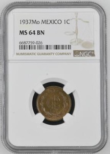 Mexico 1 Centavo 1937 Mo NGC MS 64 BN