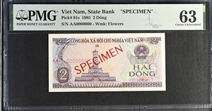 Vietnam P-90s 1 Dong 1985 Block AA Specimen PMG 64