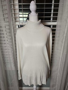 Calvin Klein Rollkragen Pullover XL weiß Strickpullover Herbst Winter Knopfärmel