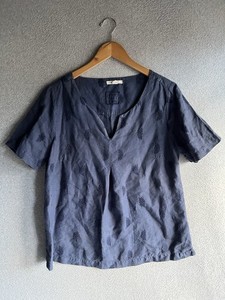 Quitten Top Damen XL schwarz Leinen Button Down kastig Oversize Lagenlook