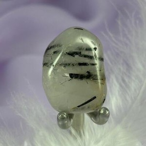 Schwarzer Turmalin in Quarz, Turmalinierter Quarz Trommelstein 17,8g SN50698