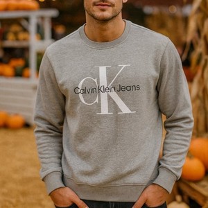 Calvin Klein Sweatshirt Herren XL Grau Langarm Freizeit Rundhals Streetwear