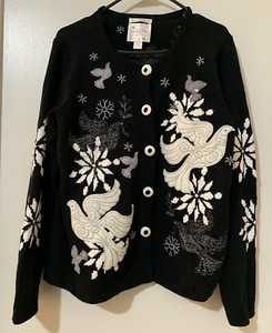 C J Banks Pullover Limited Edition 2010 schwarz Strickjacke Taubenapplikationen LARGE CHF 15,73CHF 18,50