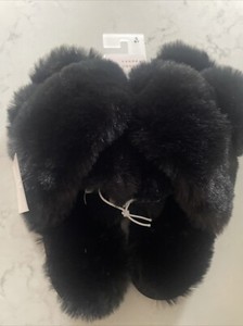 Neu mit Etikett Lauren Conrad LC X Band Kunstfell-Pantoletten Hausschuhe schwarz S Small 6/7 kuschelig CHF 11,26