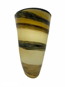 Schöne gelb/goldene, blaue, braune Swirl Kunstglas Vase - schwer - A5