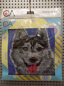 KIT MEZZO PUNTO RICAMO CANOVACCIO STAMPATO + LANA + AGO CANE HUSKY