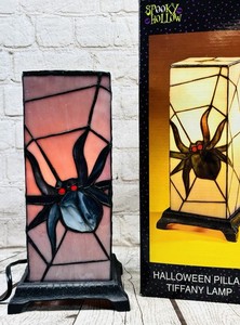 Spooky Hollow Tiffany-Stil Buntglas Spinne Lampe 11" selten mit Box
