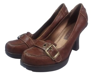 Y2K Ellemenno klobiger Absatz große Schnalle Kunstleder braune Absätze Büro Sirene 7,5 M
