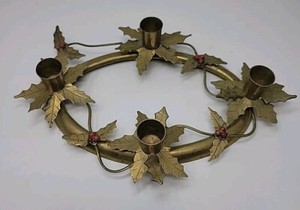 Messing Vintage Weihnachten Adventskranz Kerzenhalter Weihnachtsstern rote Beeren