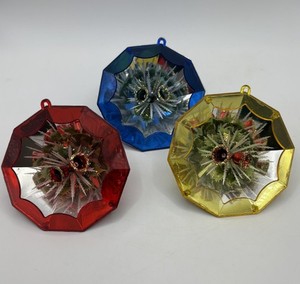 Vintage Jewel Brite Diamantförmiges Diorama Weihnachtsschmuck - 3er Set