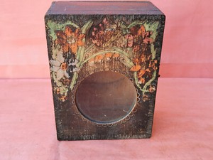 ANTIKE PRIMITIVE ALTE HANDBEMALTE WANDUHR SCHATULLE AUS HOLZ