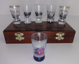Vintage Krakau Polen Holzkiste Schnapsgläser Set Mix Design Getränke Boxen