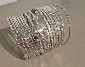 Boho Chic silberfarbenes Armreif Armband - verstellbarer offener Armreif