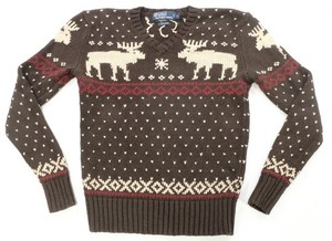 Rare Vintage Polo Ralph Lauren Moose Fair Isle Knit V-Neck Sweater 2000s Holiday S CHF 50,91CHF 56,57