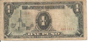 Philippines Occupation THE JAPANESE GOVERNMENT "ONE PESO CIR. BANKNOTE" # 1