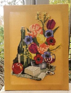 Vintage 70’s Retro Crewel Embroidery Wall Hanging Colorful 24" X 18"