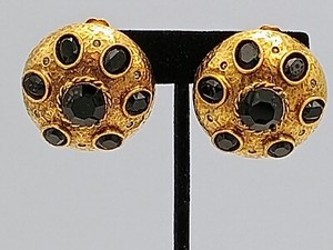 Vintage Graziano schwarze Glas & Strass runde Kuppel goldfarbene Clip-On Ohrringe