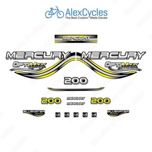Mercury OptiMax Bluewater 200 HP Yellow Outboard Laminated Decals Stickers Kit