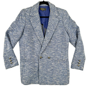 Talbots Damen Blau Tweed Blazer Größe 10 Zweireiher Gefüttert Jacke Taschen