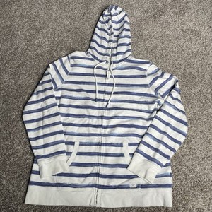 Ll Bean gestreifter Hoodie Damen Large weiß blau durchgehender Reißverschluss Buche entspannt klassisch