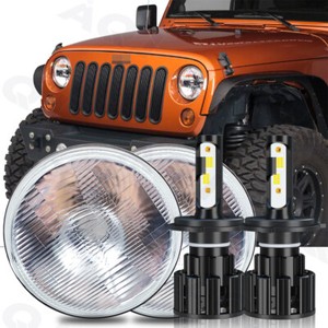 7" Stock Glass Lens Metal Headlight 6v 6Volt 6k LED H4 Light Bulb Headlamp Pair CHF 72,49Bisher: CHF 103,56