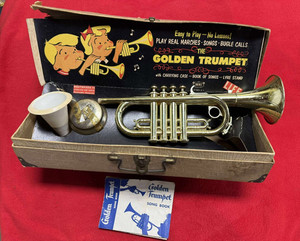 Vintage Emenee Goldene Trompete Spielzeuginstrument mit Koffer, Dämpfer & Liederbuch SCHNELLER VERSAND CHF 19,99