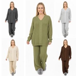 Damen Co Ord Set 2-teilig Loungewear schwerer Zopfmuster mit nach unten gehender Mitte