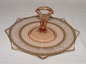 PERFEKTE Rosa Depression Goldrand "LILIEN" Achteckförmige Leckerbissen Platte!