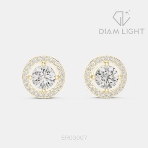 3,42 kt runde IGI-zertifizierte im Labor gezüchtete Diamant-Ohrstecker Halo 14 kt Gelbgold CHF 1.364,09