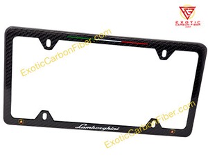 Lamborghini White Script & 3D Logos 4 Hole Slim Carbon Fiber Plate Frame