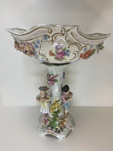 Carl Thieme Dresden deutsches Porzellan Herzstück Kompott Netzfuß 14 Zoll