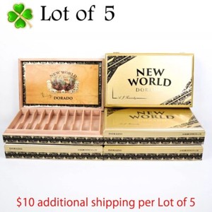 Lot of 5 New World Robusto Dorado Empty Wood Cigar Box 10.75" x 6.5" x 2"
