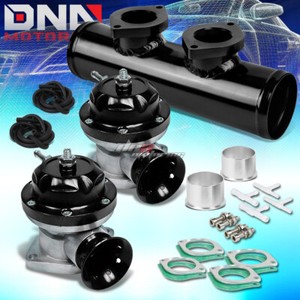 ADJUSTABLE TURBO BLOW OFF VALVE+DUAL TYPE RS 2.5" FLANGE PIPE ADAPTER PSI BLACK