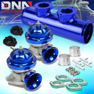 ADJUSTABLE TURBO BLOW OFF VALVE+DUAL TYPE RS 2.5" FLANGE PIPE ADAPTER PSI BLUE